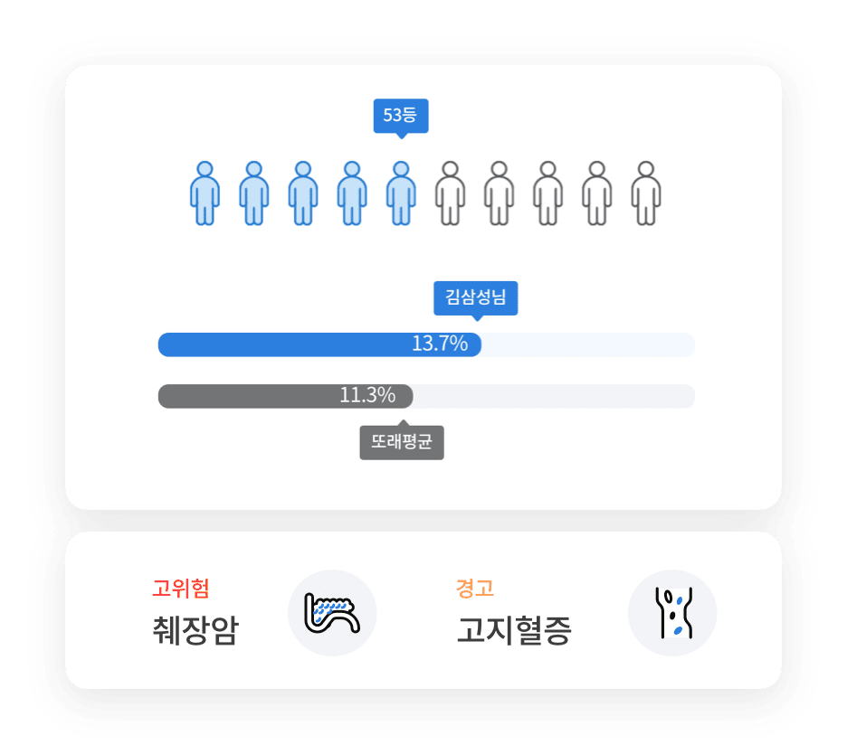 • 본 서비스는 일반건강검진결과를 기반으로 제공되며 최근 10년간 결과가 없을 시 서비스 이용이 제한될 수 있습니다.